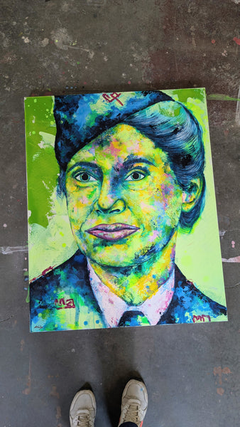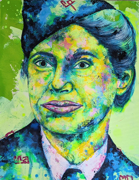 Material: Porträt auf Leinwand. Gemalt mit Acrylfarbe.